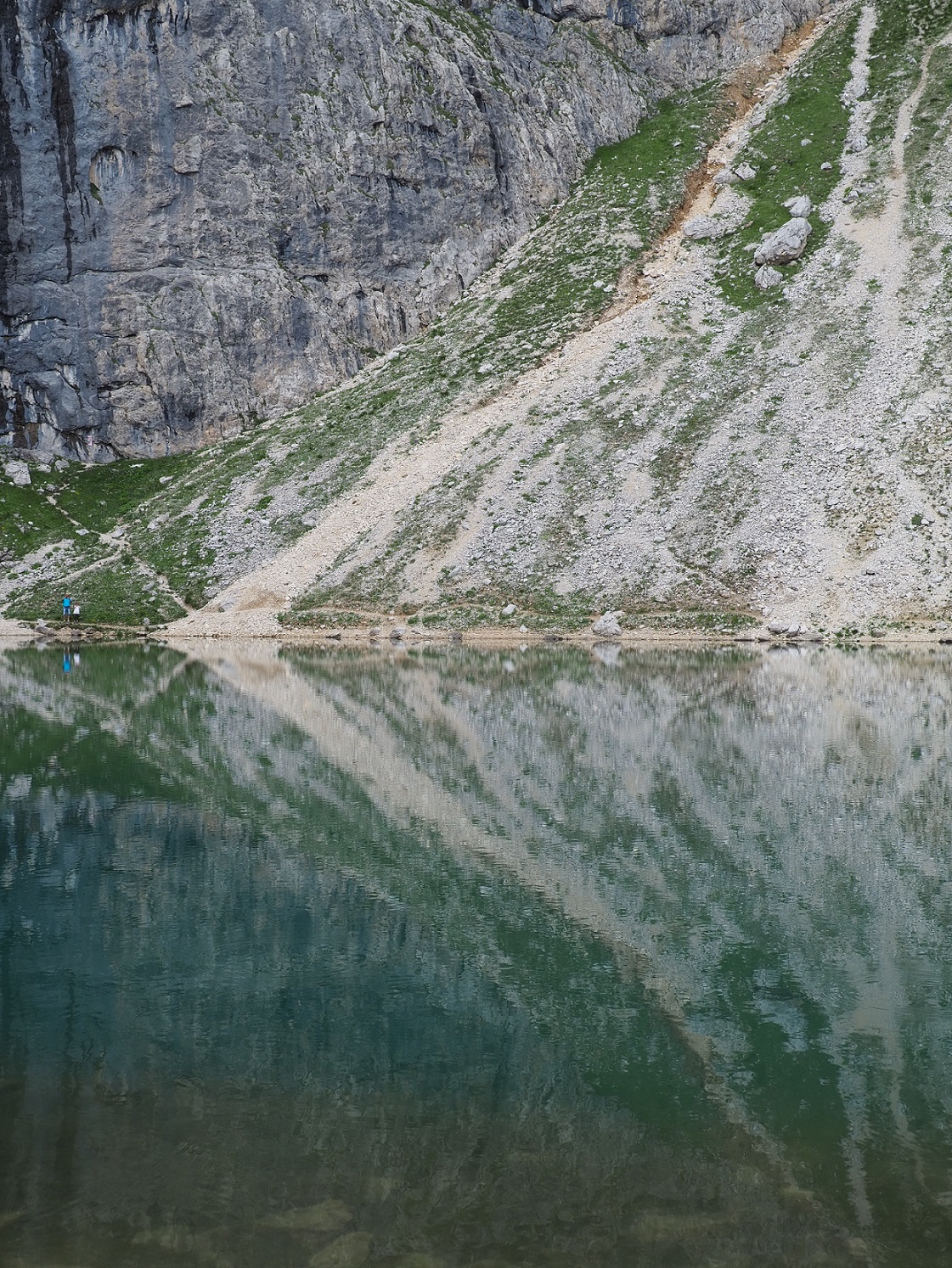 Notre hôtel étant situé à Colfosco, nous empruntions d’abord le chemin 28 jusque Corvara. Après quelques minutes en route dans le téléphérique, nous arrivions au Piz Boé Alpine Lounge. La vue y était déjà magnifique alors que la randonnée ne faisait que commencer. Nous nous dirigeons alors vers le haut de la montagne mais prenions tout d’abord une pause rapide pour immortaliser le lac Boé (Lech de Boé).